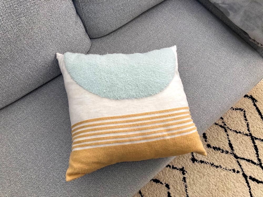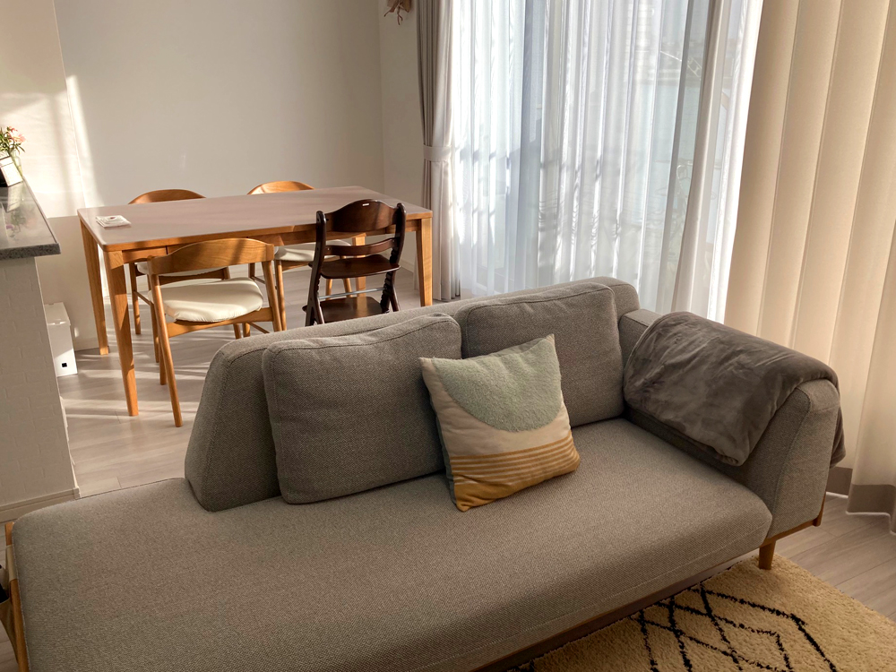 ソファはunicoで購入したのですが、その時に店舗で一緒に飾られていたクッションがとても可愛かったので、真似をして買ってみました。